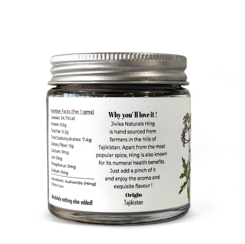 • ASAFOETIDA the plant is sourced from the Hing growing country Tajikistan.