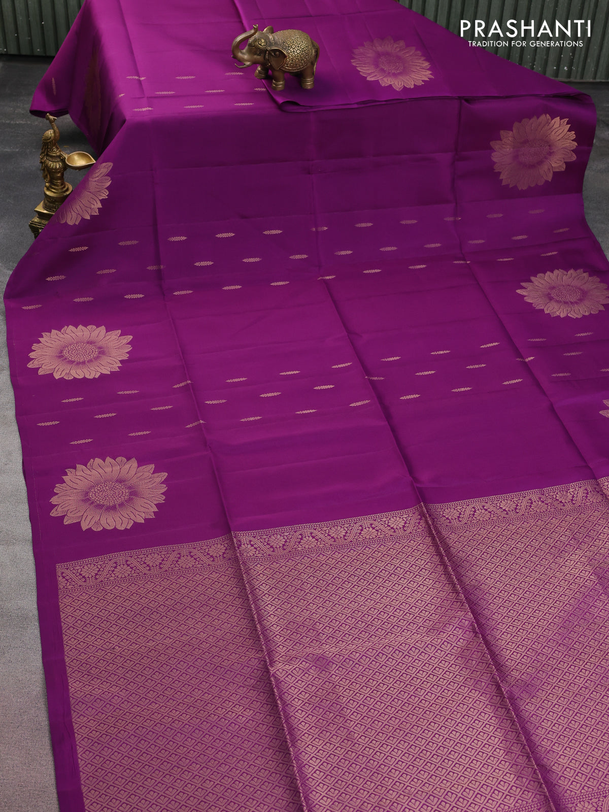 Kanchipuram soft silk saree purple with allover zari woven buttas and zari woven floral butta border