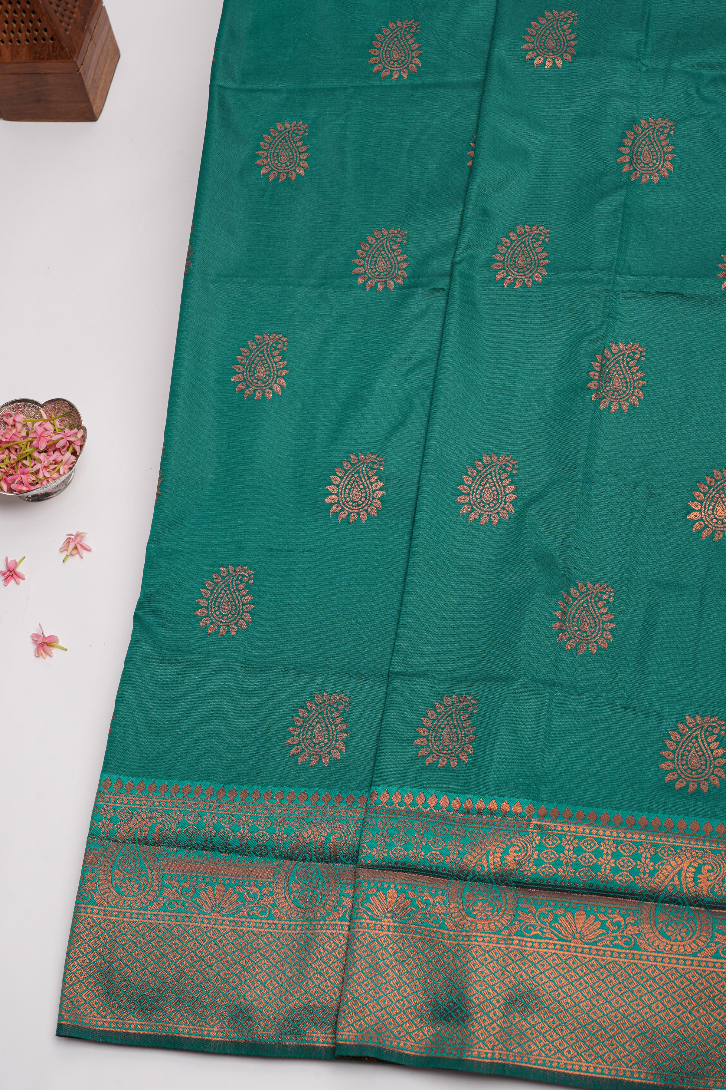 LIGHT GREEN and GOLD BUTTIS SILK BLEND Saree with SEMI PATTU