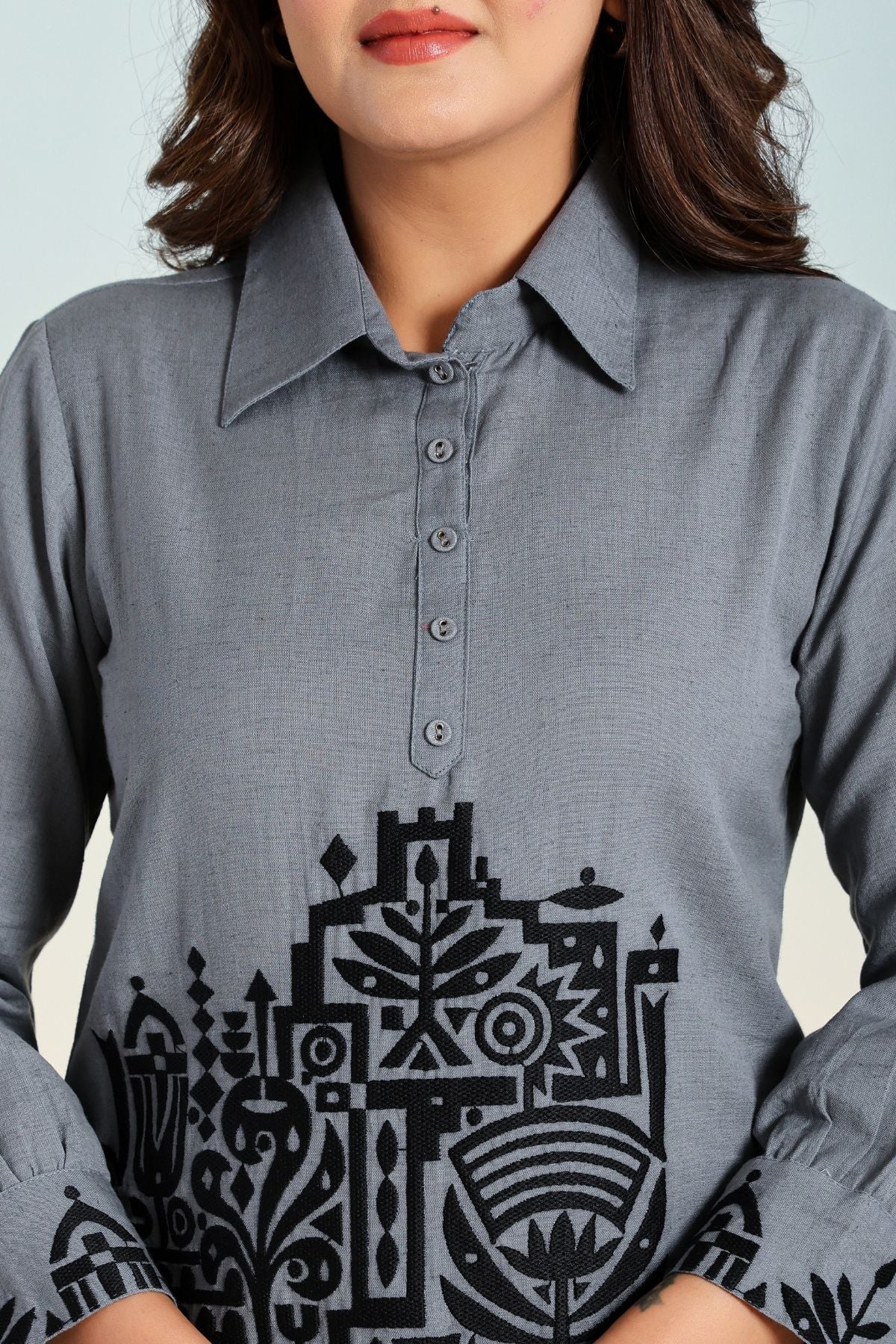 Step into effortless style with this Linen Kurti for Office Wear in a soothing light grey co-ord set. Crafted from breathable linen, it offers a sleek, polished look that’s perfect for all-day comfort at work or casual meetings.