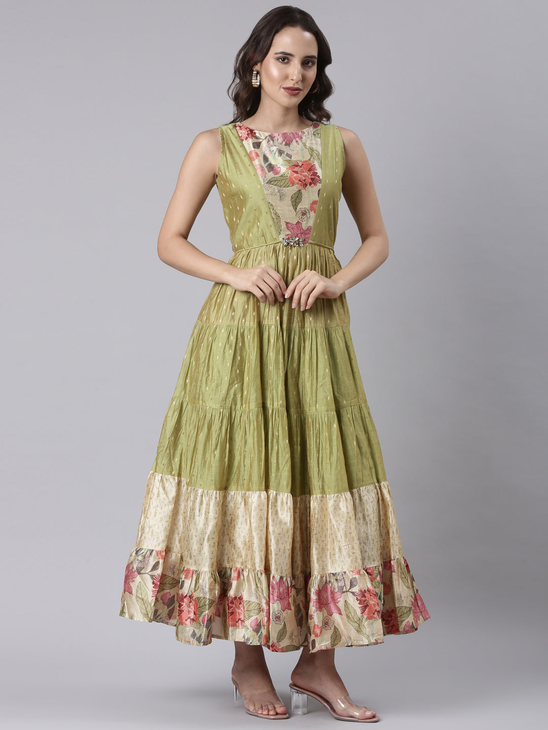 Embrace effortless elegance with this M Green Chanderi one-piece long gown. Crafted from breathable Chanderi fabric, it offers a lightweight and comfortable fit perfect for warm days or special occasions. The rich green shade adds a refreshing touch to your wardrobe, while the flowing silhouette enhances your natural grace. Ideal for both casual outings and festive events, this gown blends traditional charm with modern style, allowing you to look and feel confident wherever you go.