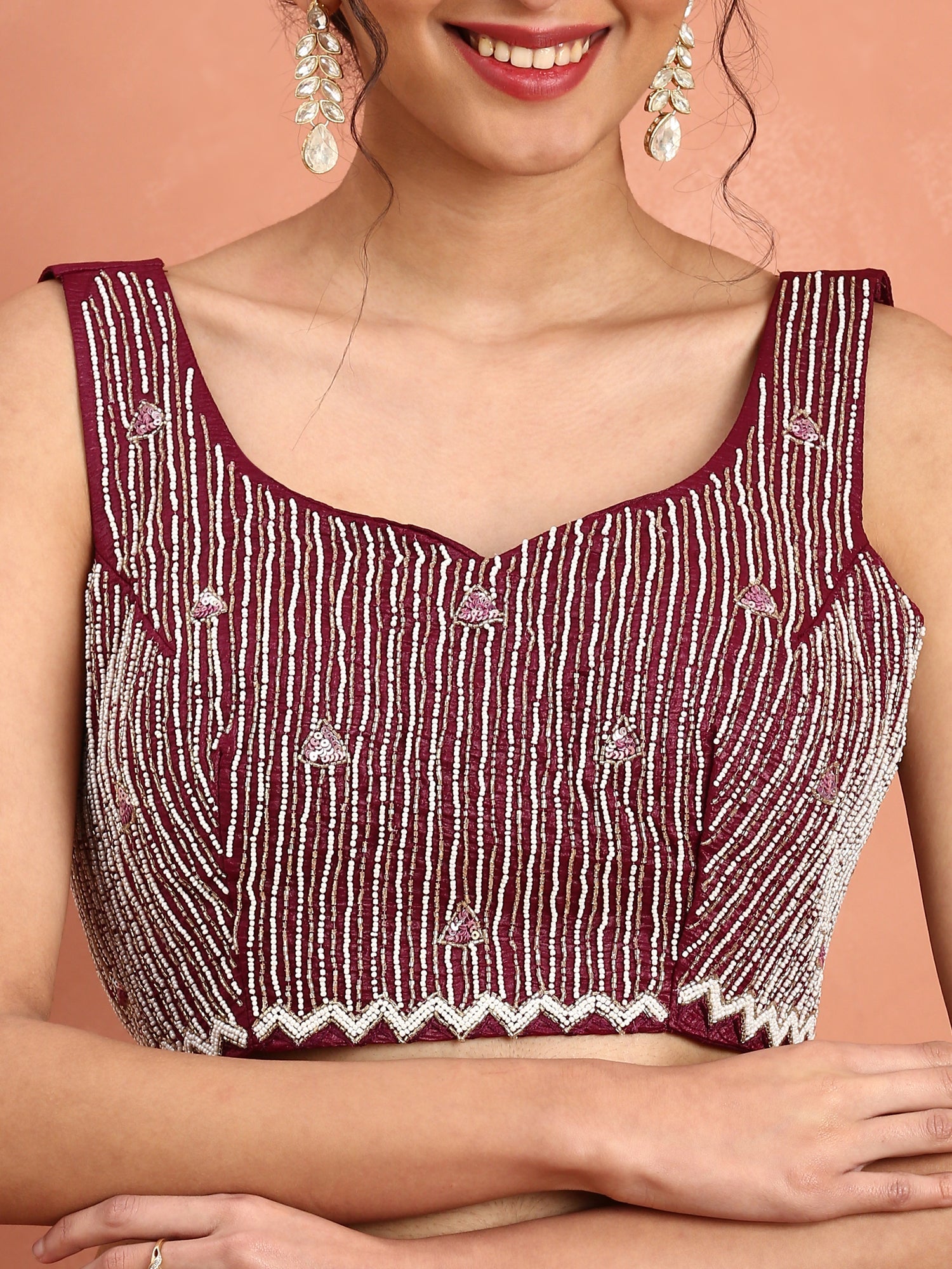 Mahroon Jimmy saree with cut Dana & pearl embroidery with ready made blouse