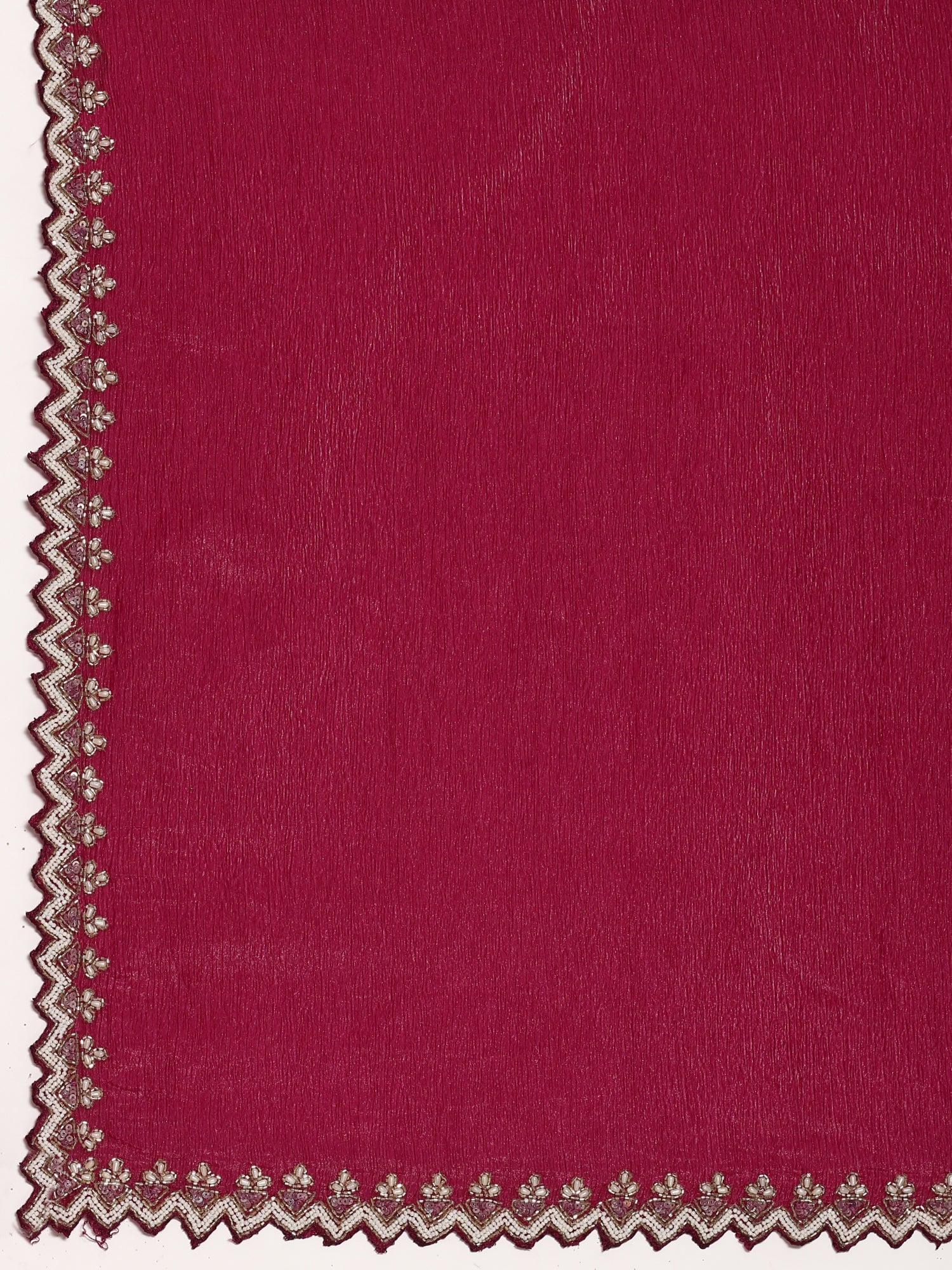 Elevate your traditional wardrobe with this elegant Mahroon Jimmy saree featuring intricate cut Dana and pearl embroidery. Crafted to enhance your grace, the detailed embellishments add a refined shimmer to the rich fabric. It comes with a ready-made blouse for a seamless and sophisticated ensemble, perfect for special occasions where you want to make a lasting impression.