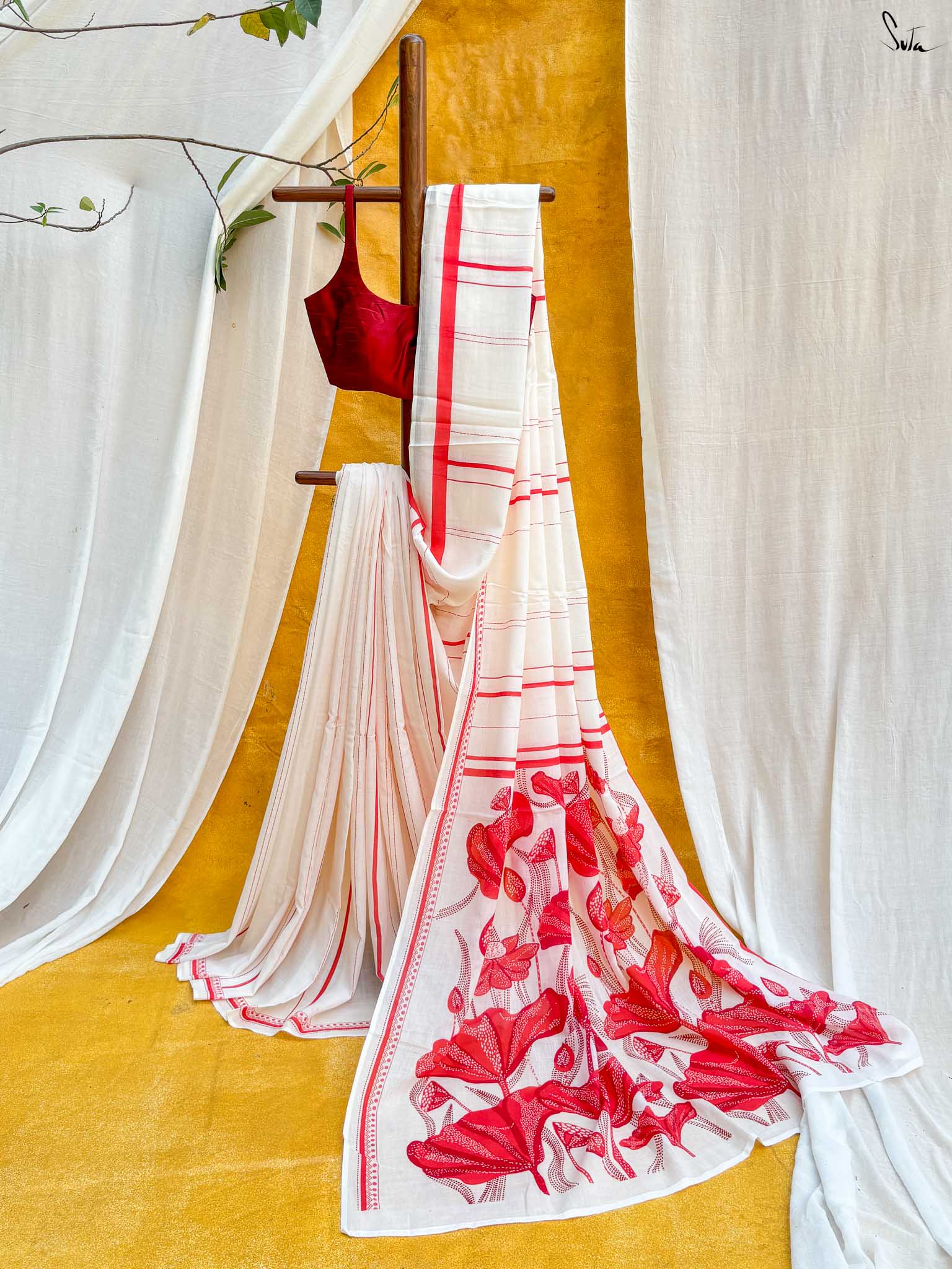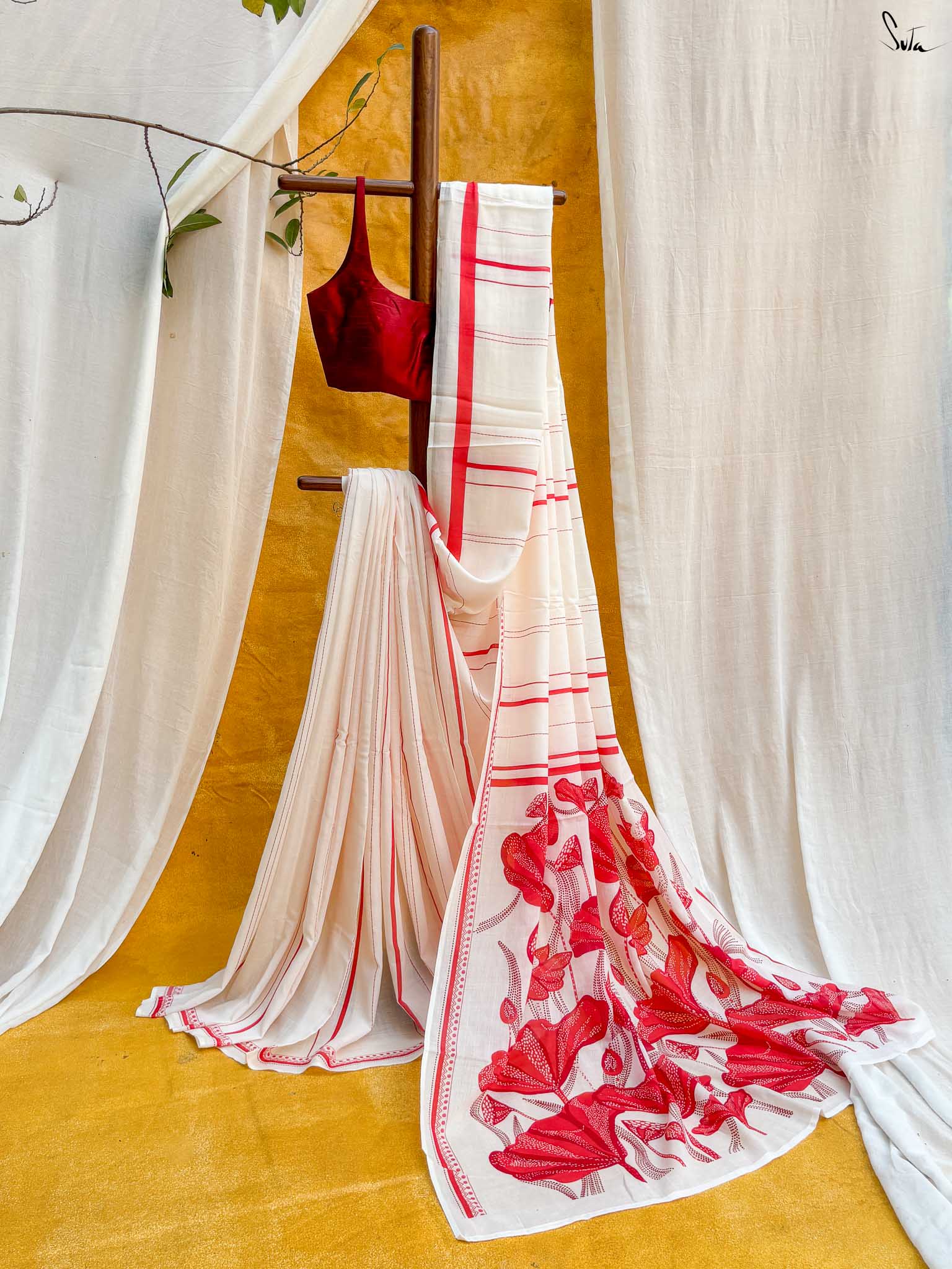 Note: Our mul sarees are slightly transparent, it’s the nature of the fabric and part of its soft, airy charm.