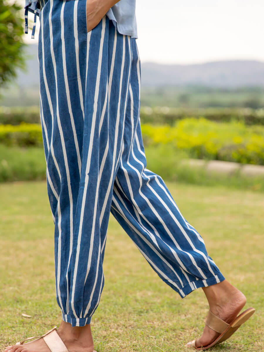 Midnight Stripes Cotton Lantern Pants