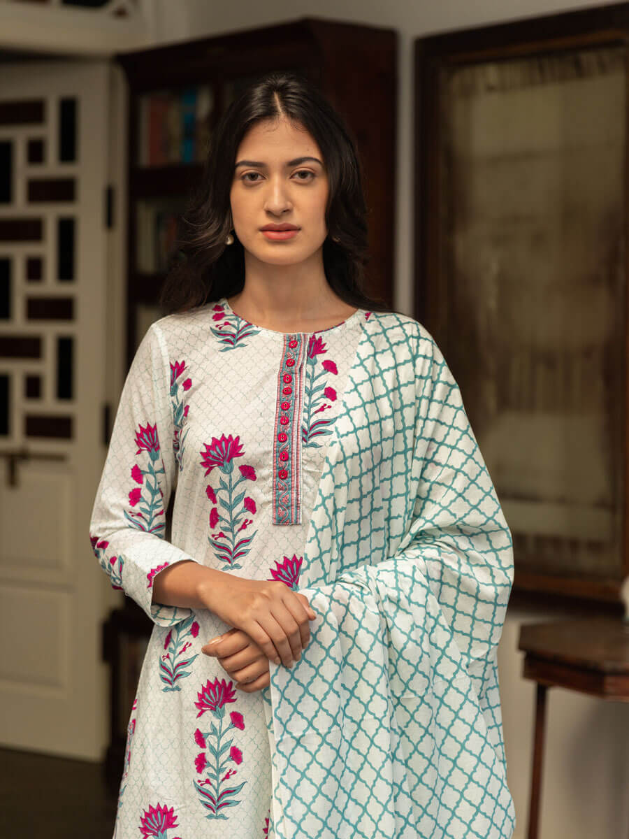 Nazm Block Printed Cotton Dupatta