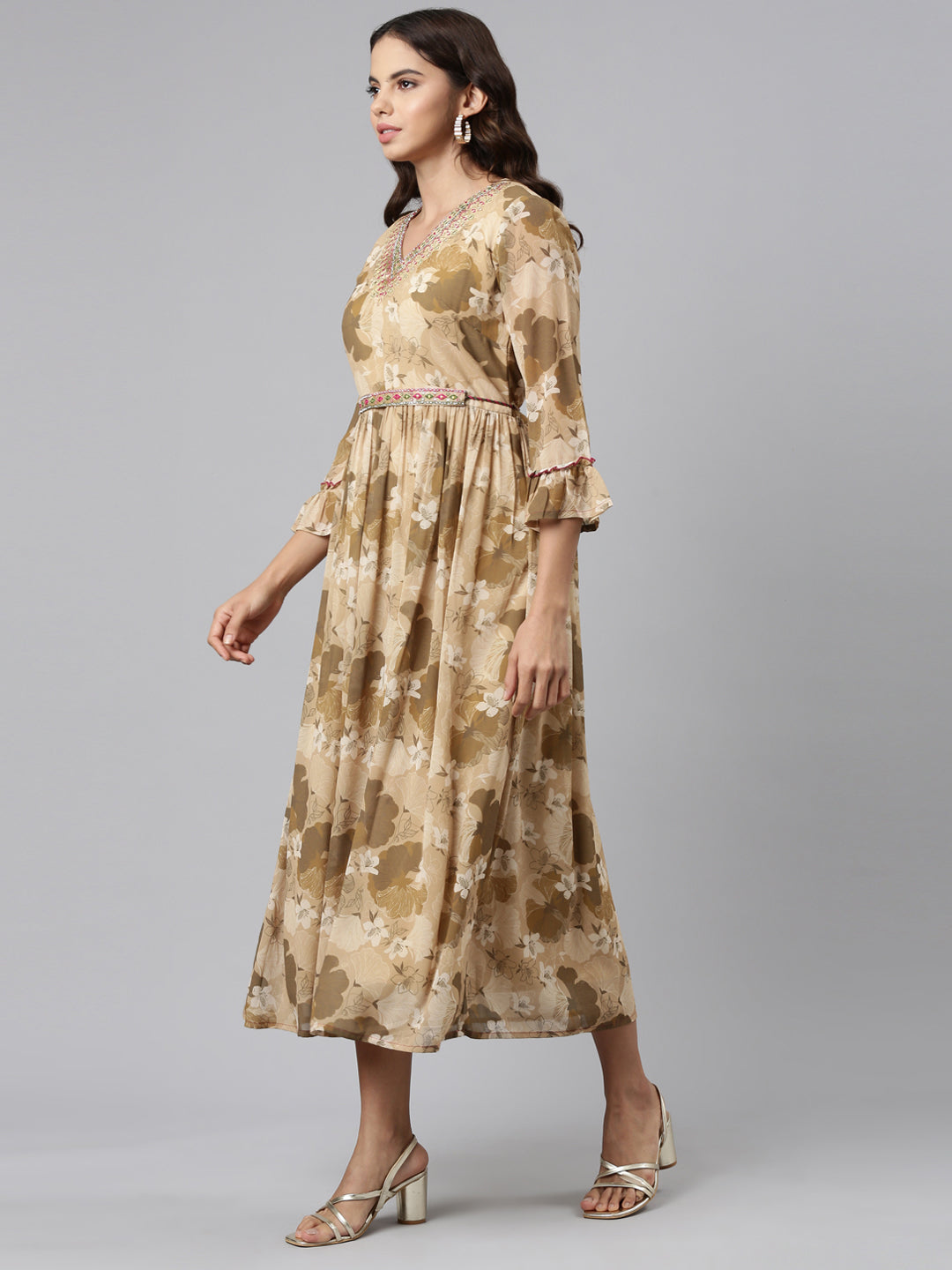Neeru's Beige Straight Casual Printed Maxi Dresses