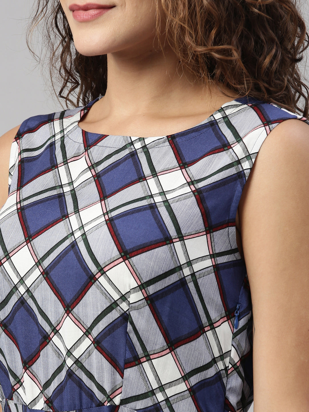 Neeru's Women Blue Checked Kurta
