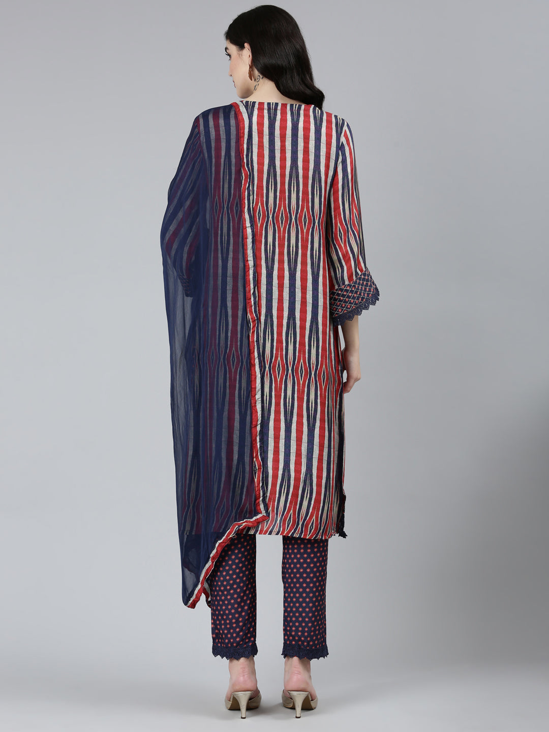 Neeru's Blue Regular Straight Chevron Kurta Sets And Trousers With Dupatta