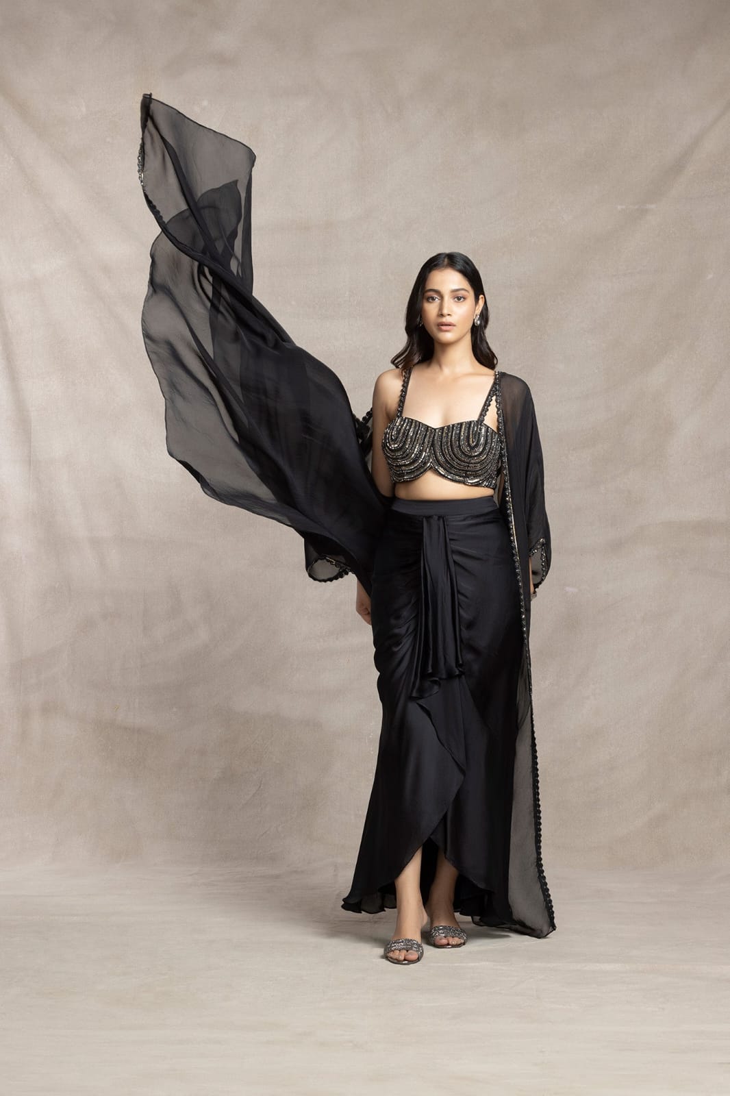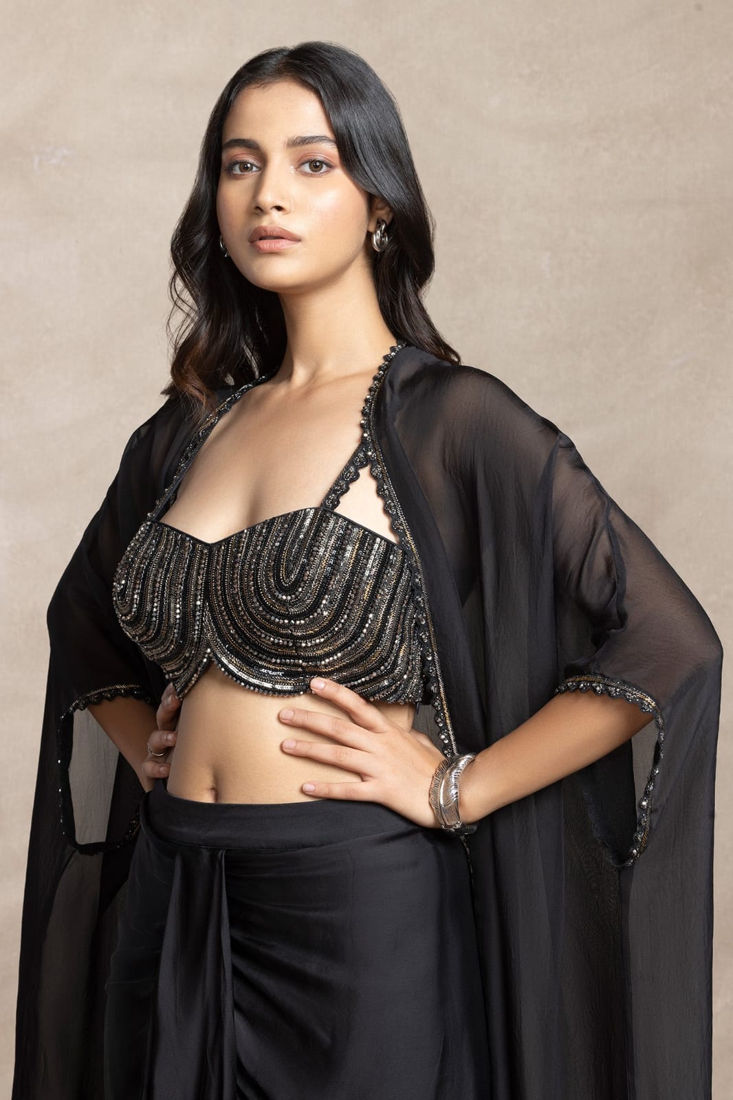 The dramatic silhouette and rich detailing make it a head-turner, perfect for making unforgettable entrances at every event.