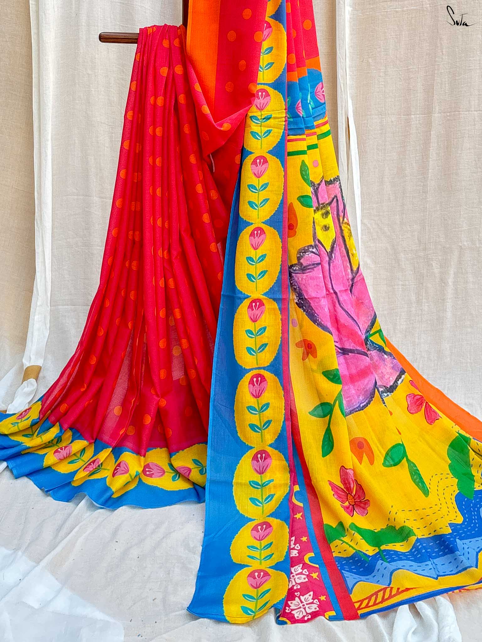 Note: Our mul sarees are slightly transparent, it’s the nature of the fabric and part of its soft, airy charm.