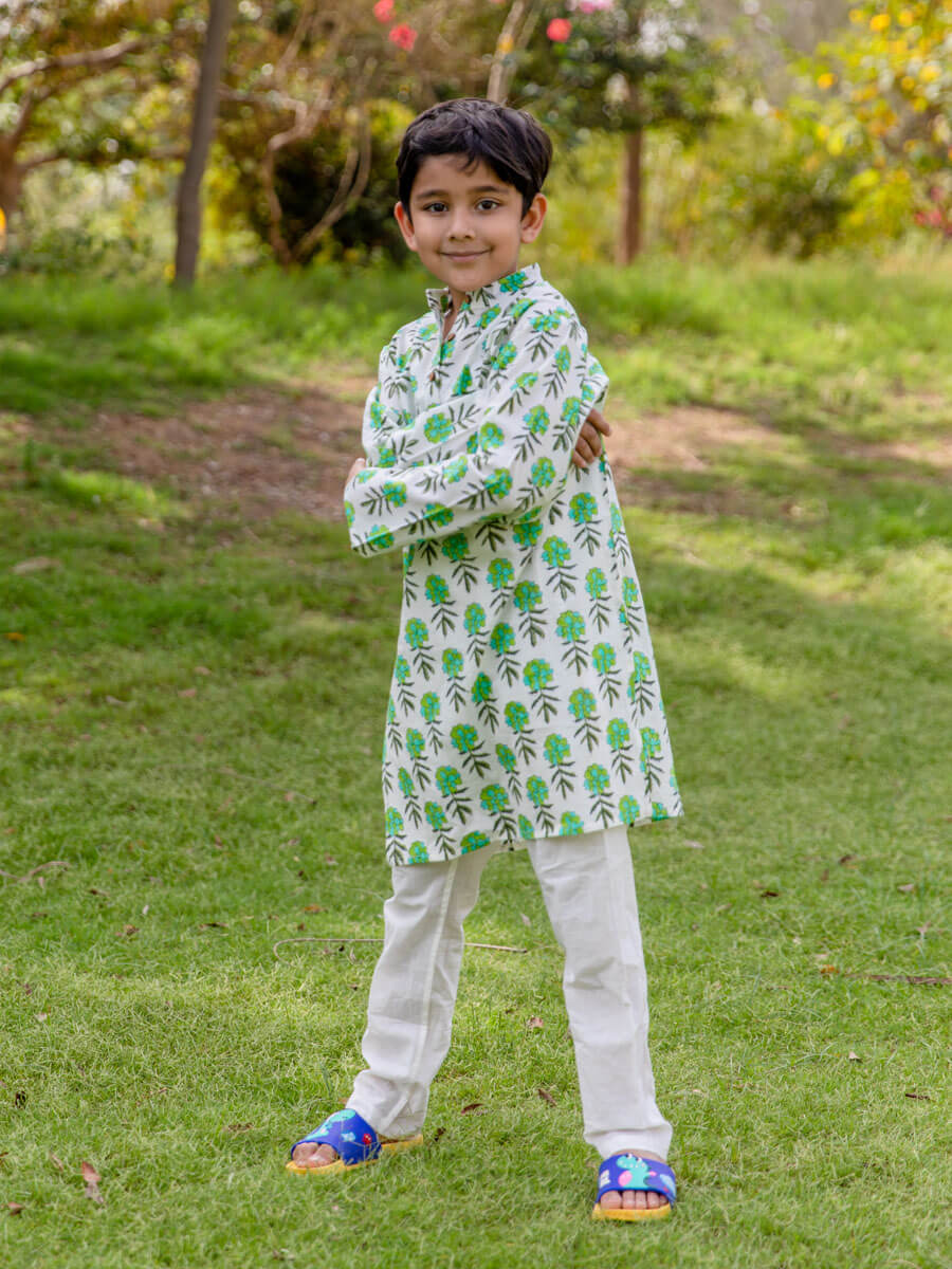 Phulwari Organic Cotton Block Printed Kurta