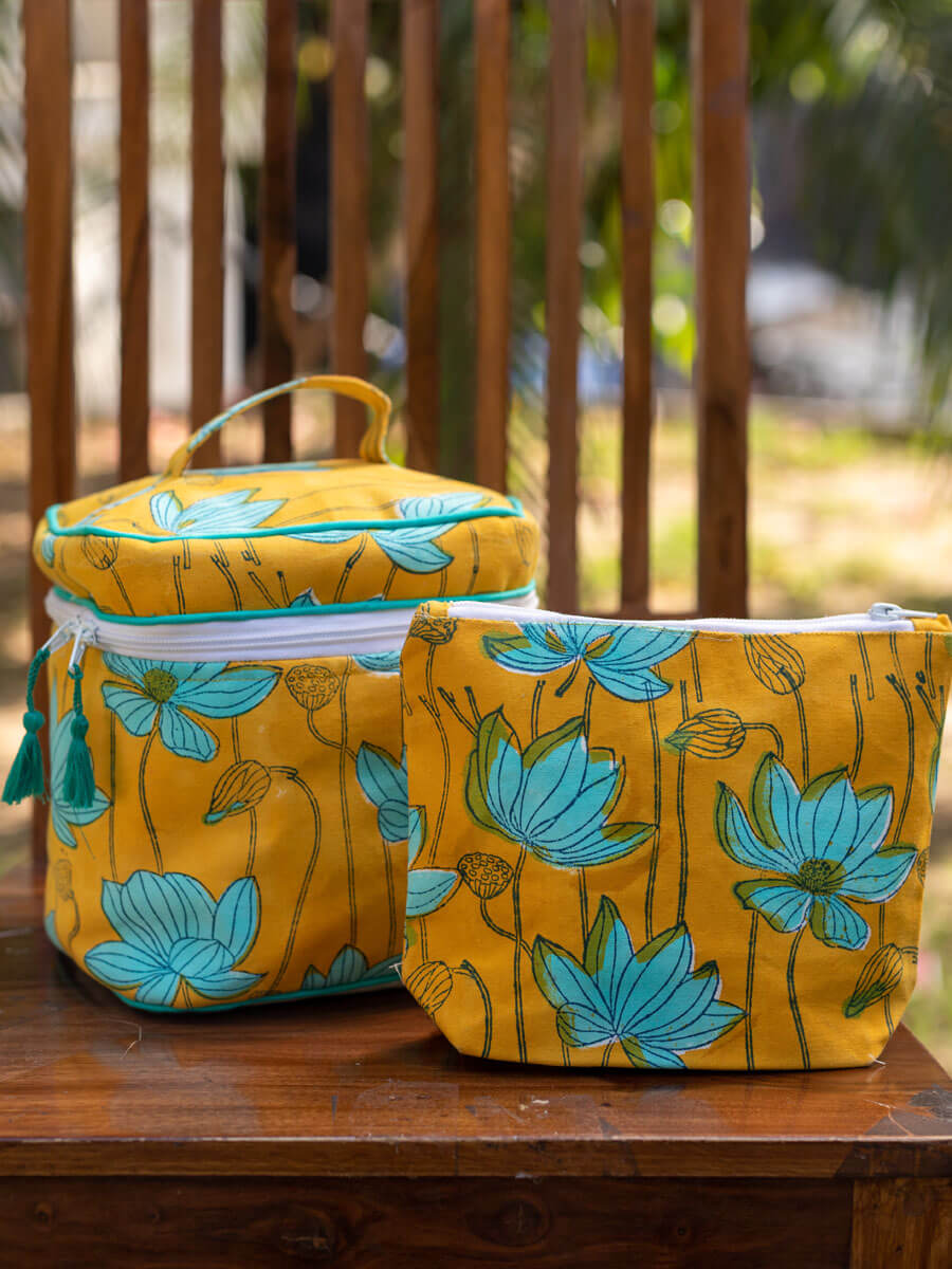 Padma or the Lotus is a central figure in many art forms including Pichhwai. It's a flower with meaning, beauty, and great cultural significance. The origin of the Lotus in Hindu mythology goes as far back as 'Samudra Manthan'. Its first association is with Lakshmi who also emerges from 'Samudra', hence, is referred to as Padmaja or Padmavati. This hand block printed home textiles collection is inspired by the beautiful lotus and other nature inspired elements.
