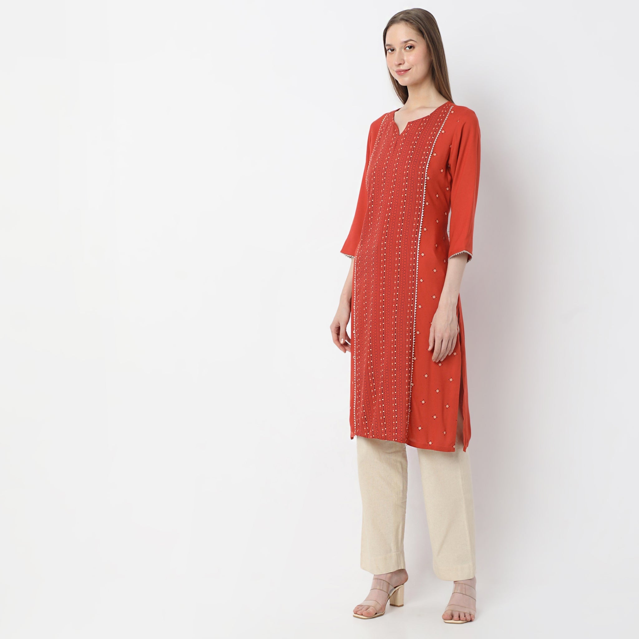 Experience the perfect blend of comfort and style with our Printed Below Knee Straight Fit Table Kurta. Crafted from 100% Rayon, this kurta offers a soft, breathable feel that keeps you comfortable all day long. The elegant printed pattern adds a touch of sophistication, making it a versatile choice for both casual outings and formal gatherings.