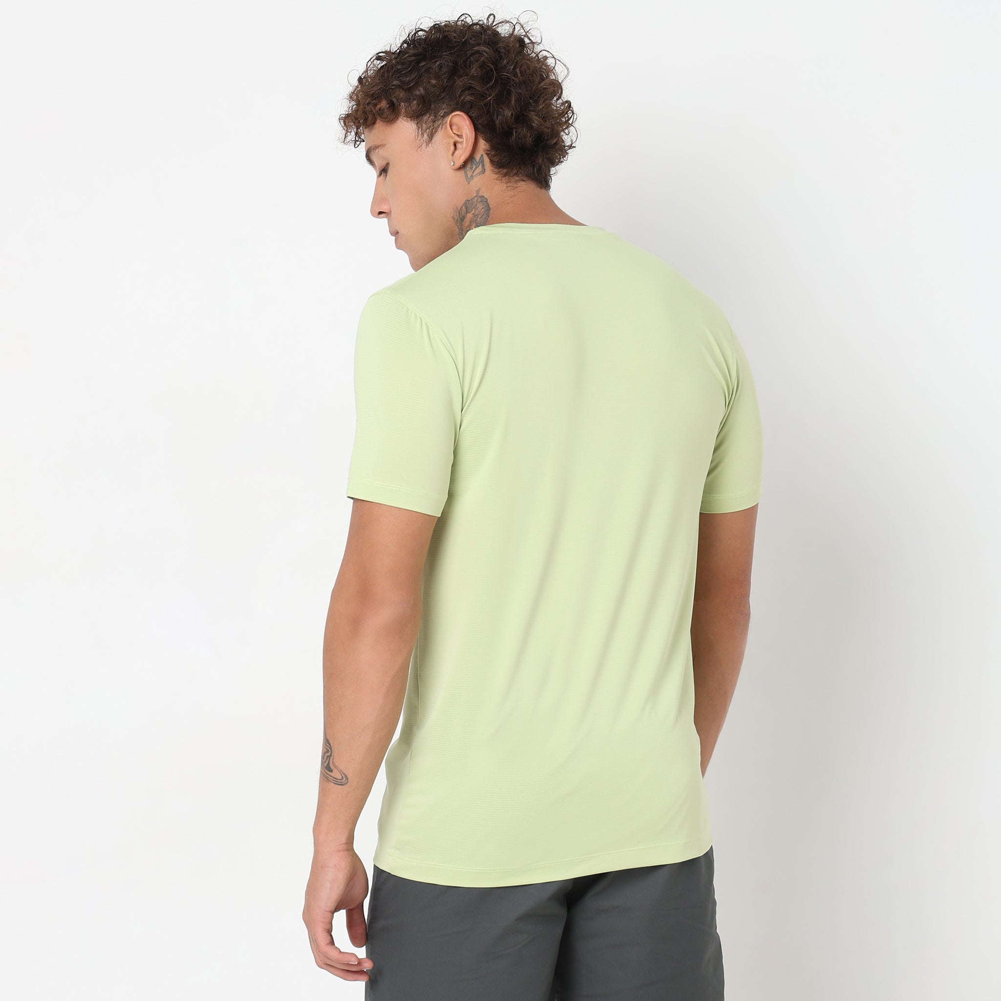 This solid pattern t-shirt has a crew neck and half sleeve. Made from Polyester Spandex, it is soft and comfortable to wear.