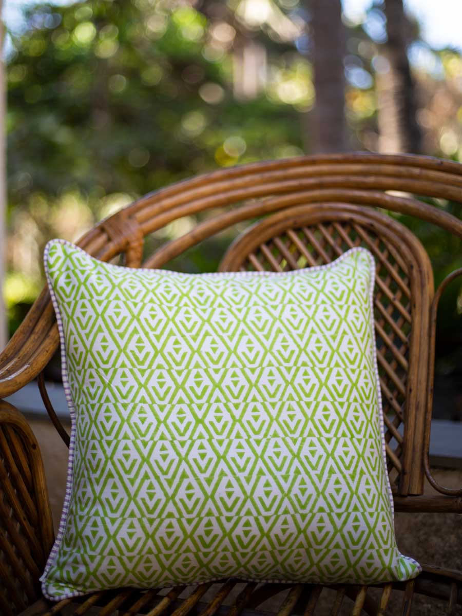 Romantic Lavender Block Printed Cotton Cushion Cover - 16 Inch