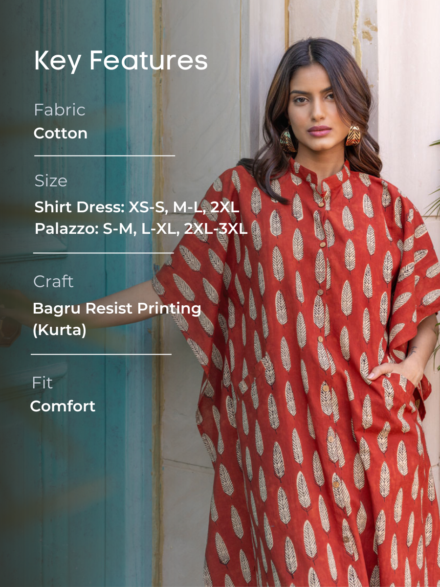- Set includes: Kaftan shirt dress and palazzo