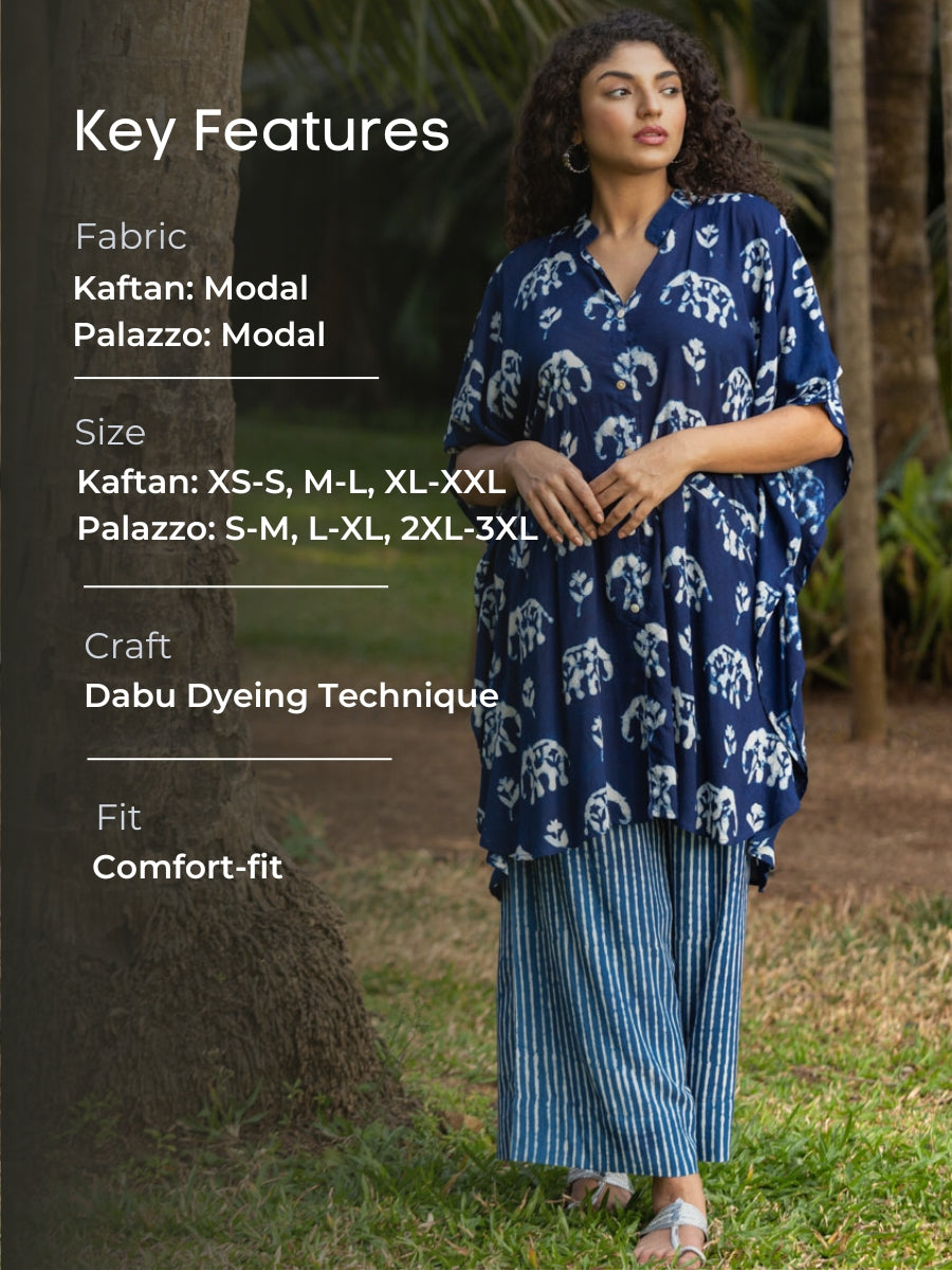 - Palazzo: Handcrafted using dabu dyeing technique on flowy modal