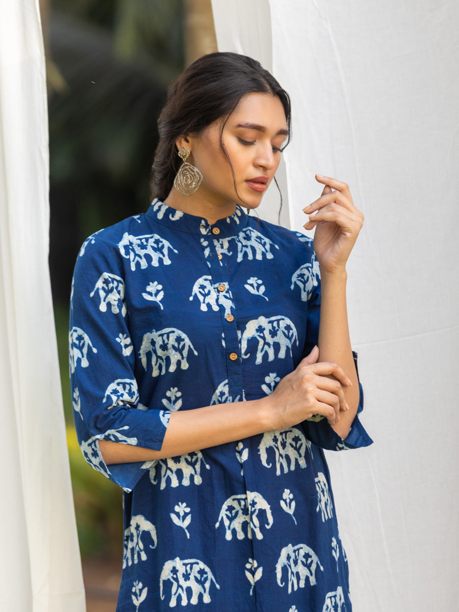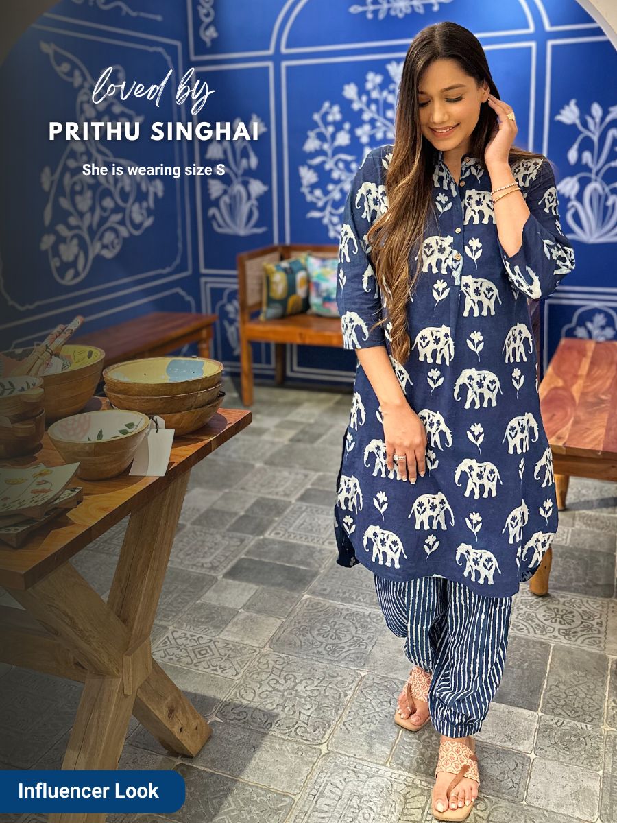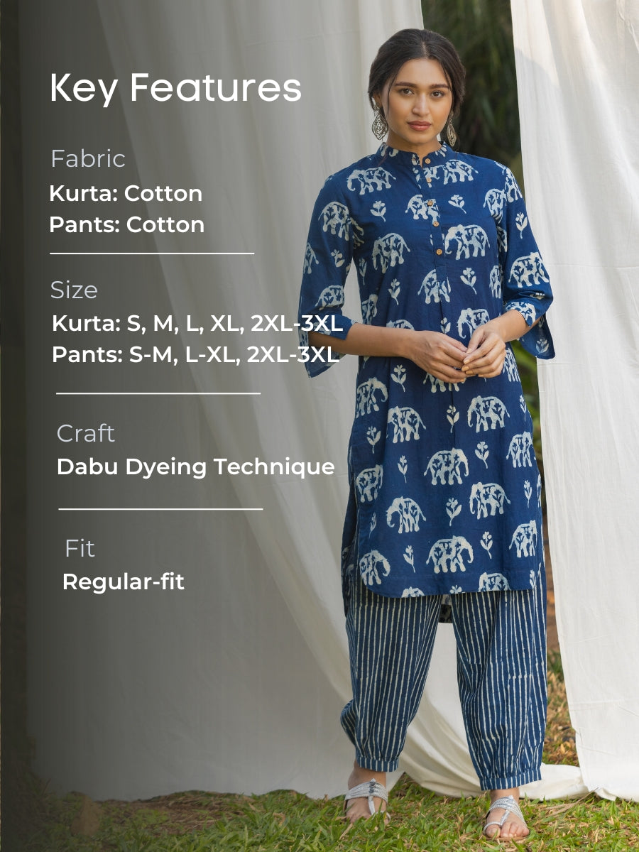 Set of 2 - Tarang Indigo Cotton Kurta with Pants