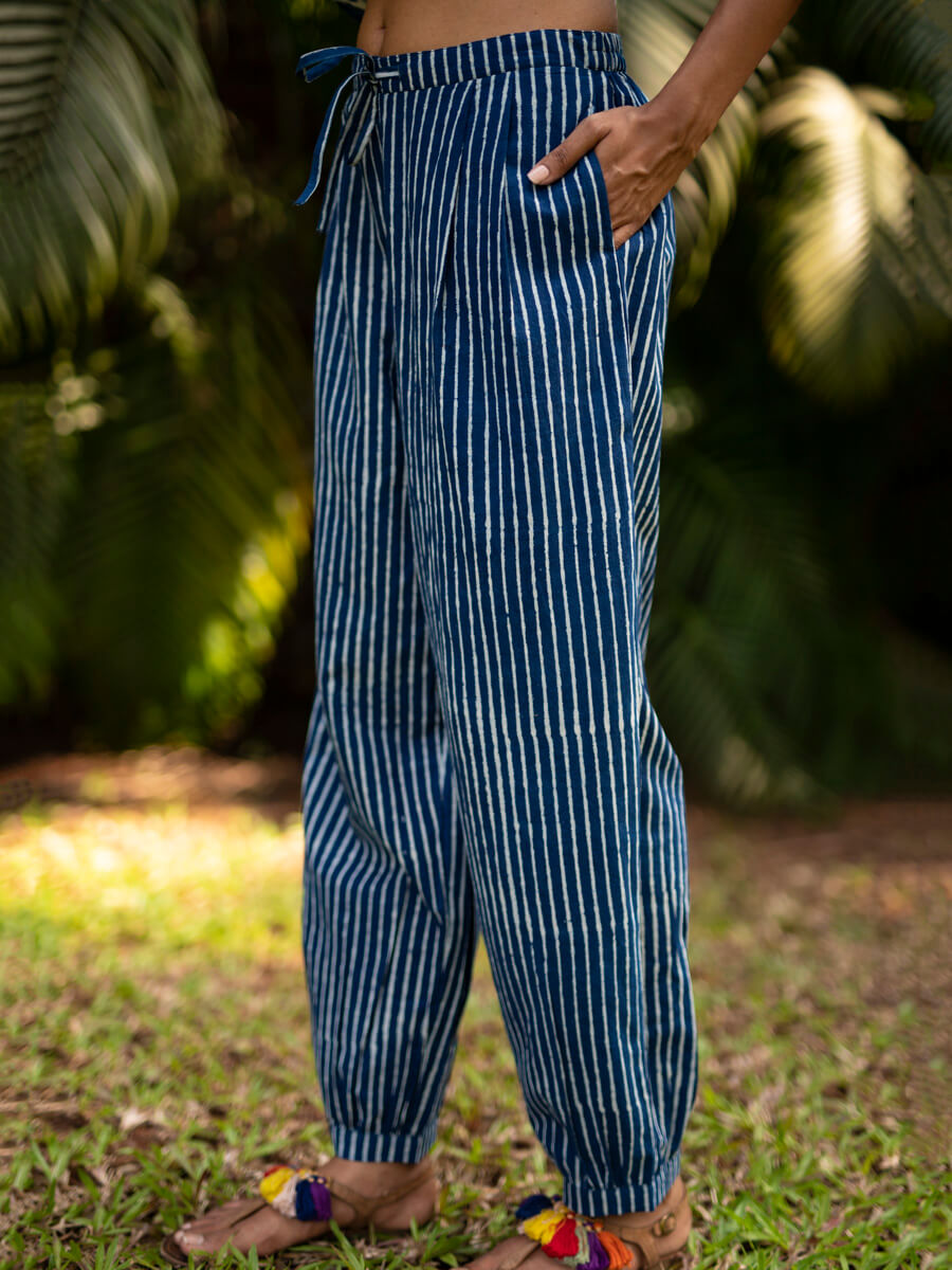 • Elegant, fine cotton, indigo kurta with lantern pants
