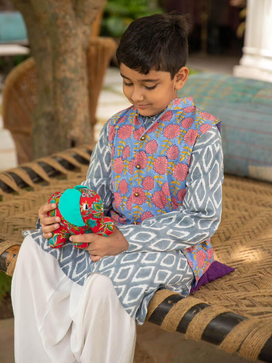 Set of 3 - Hrishi Organic Cotton Long Kurta with Jacket