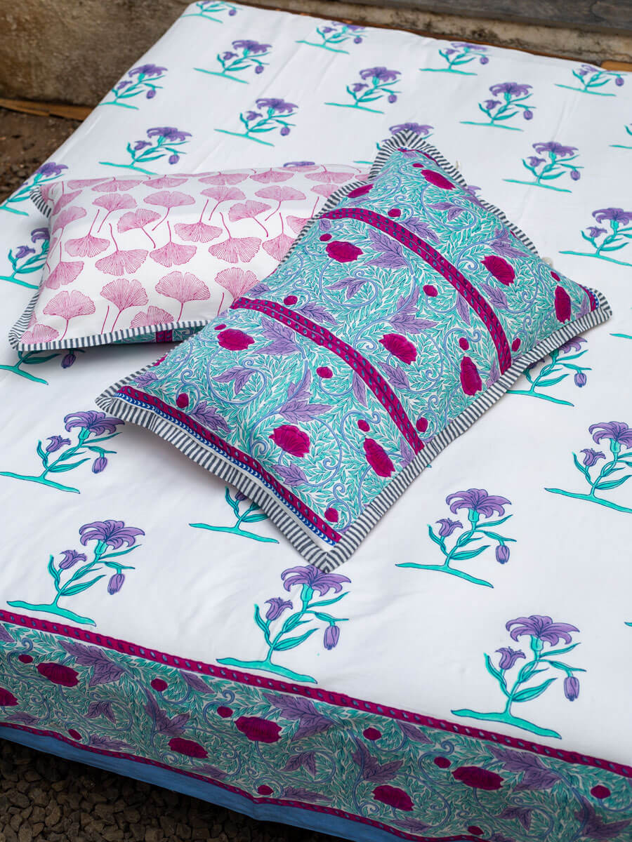 Song of Lilies Block Printed Cotton Bedsheet