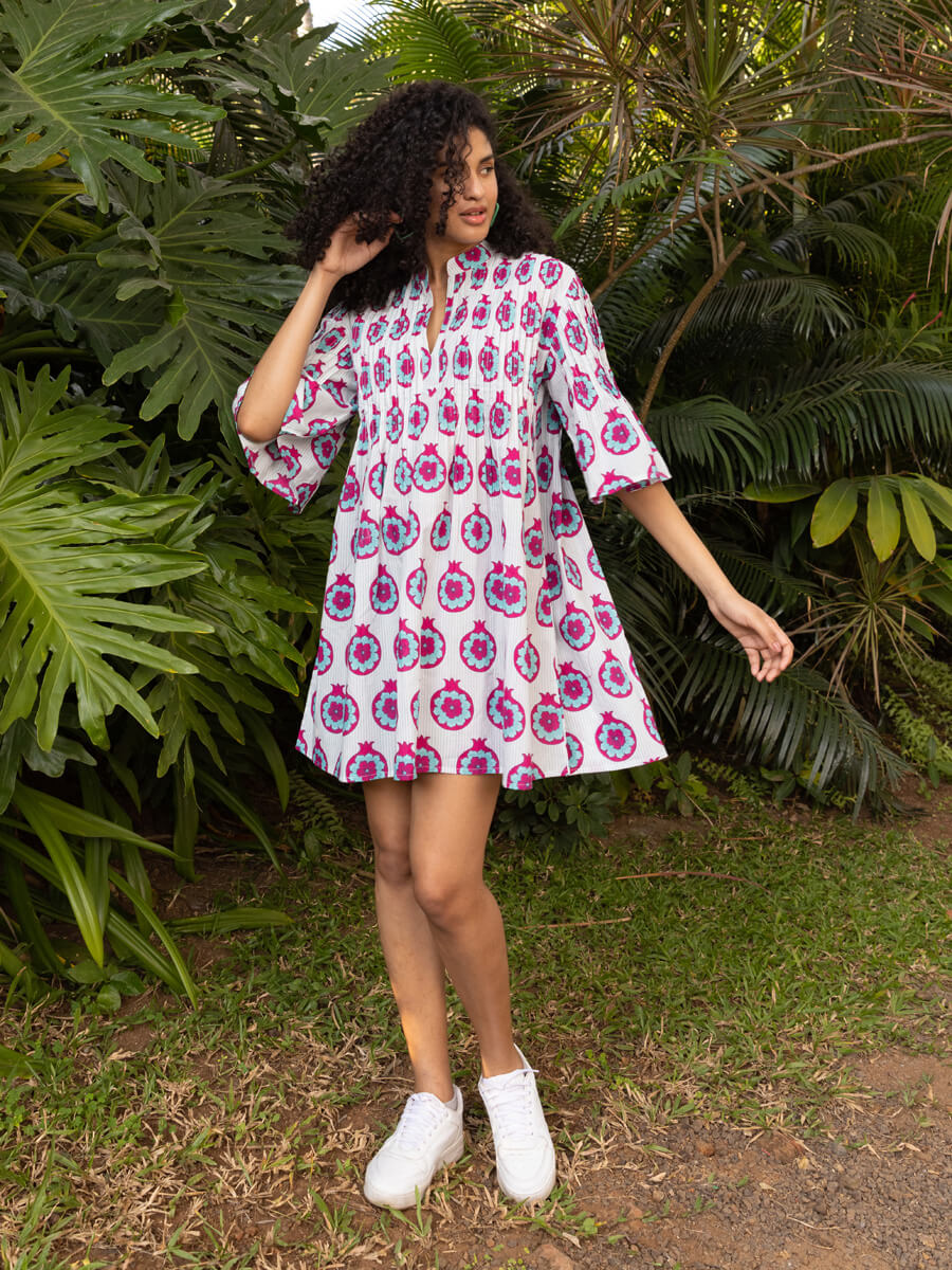 You love our pintuck dresses, we know that. We discontinued blue paradise recently and the hurt was real. But, we promised you something wonderful is in the making - here it is. Promise delivered! Presenting Tara, handblock printed Pinklay's iconic pintuck shortie!