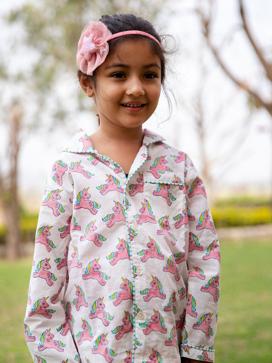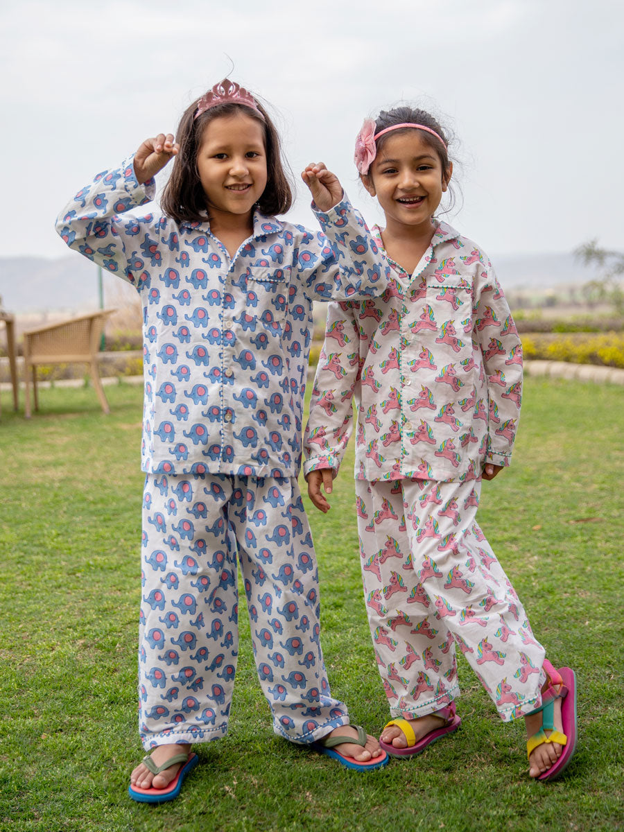 Unicorn Block Printed Cotton Top & Pyjama Set