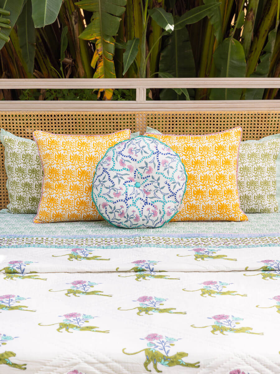 Vyom Block Printed Cotton Pinwheel Cushion With Filler - 16 Inch