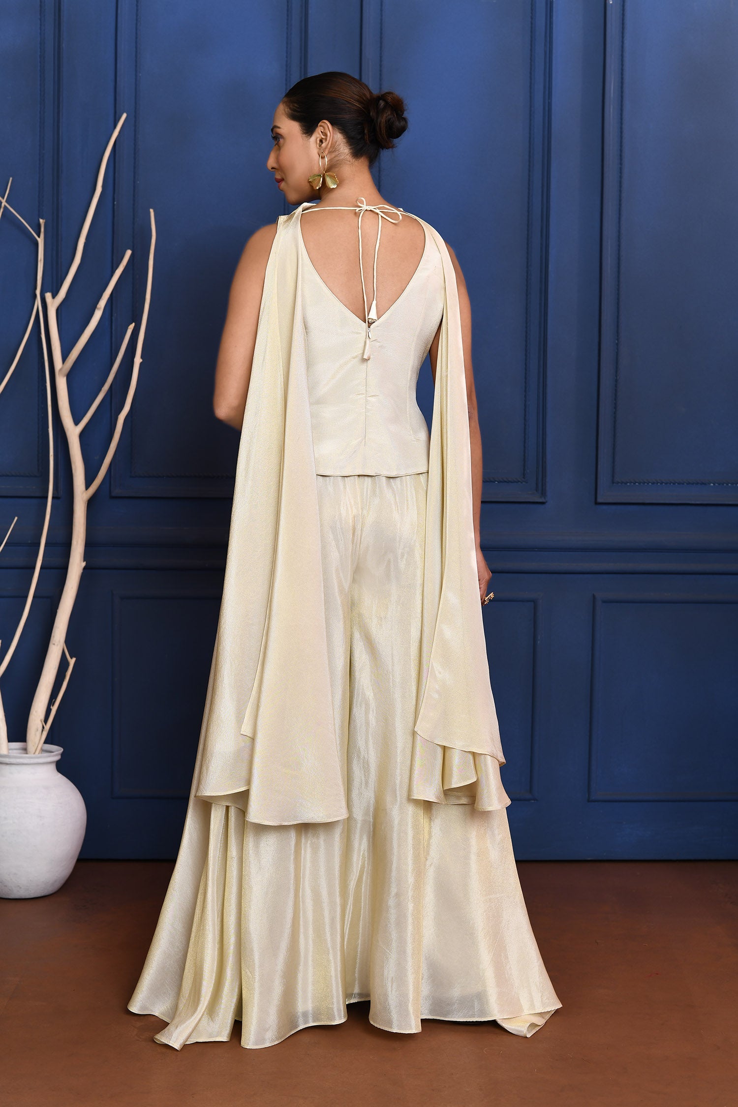 White Floral Tissue Indo-Western Set