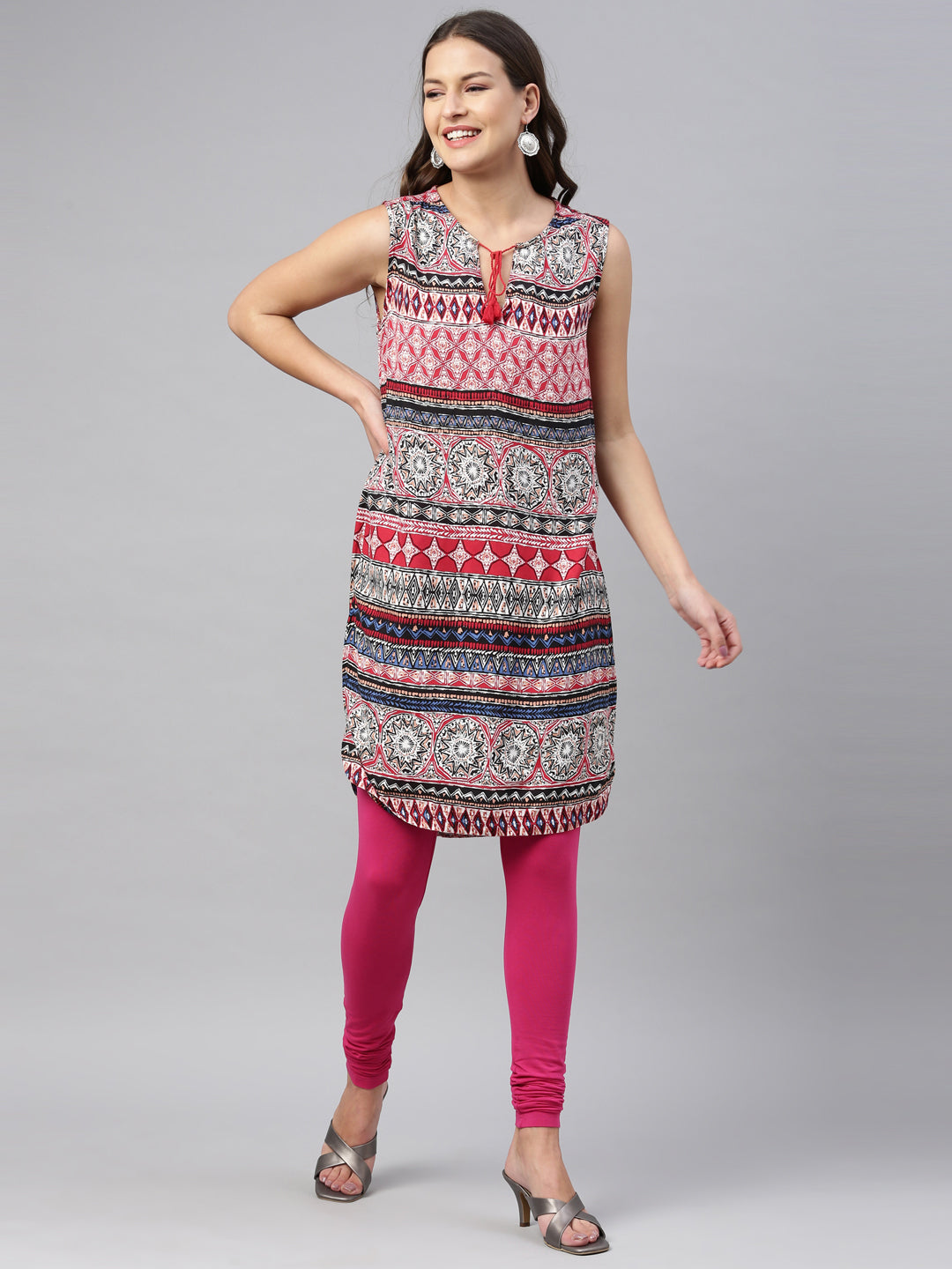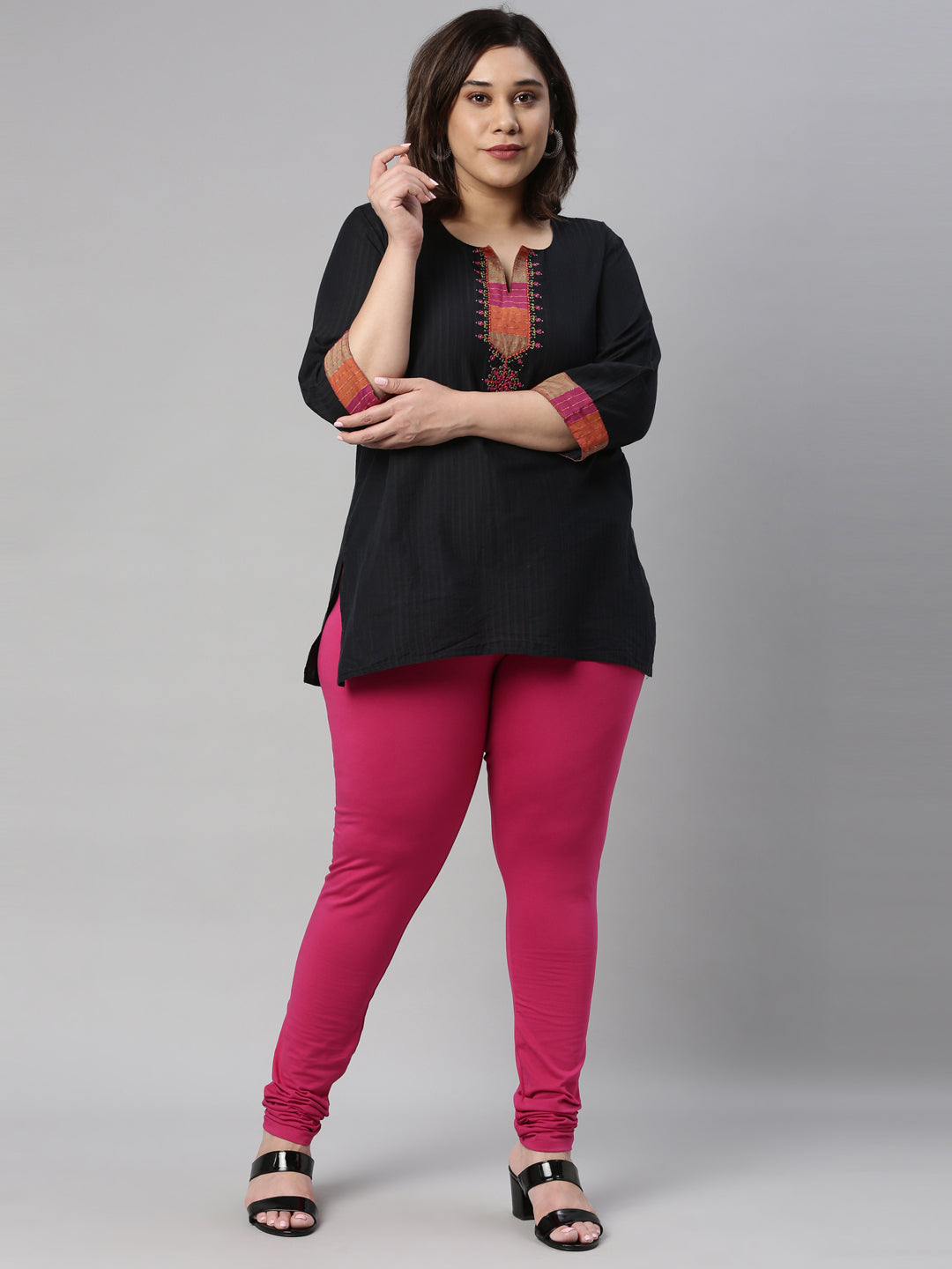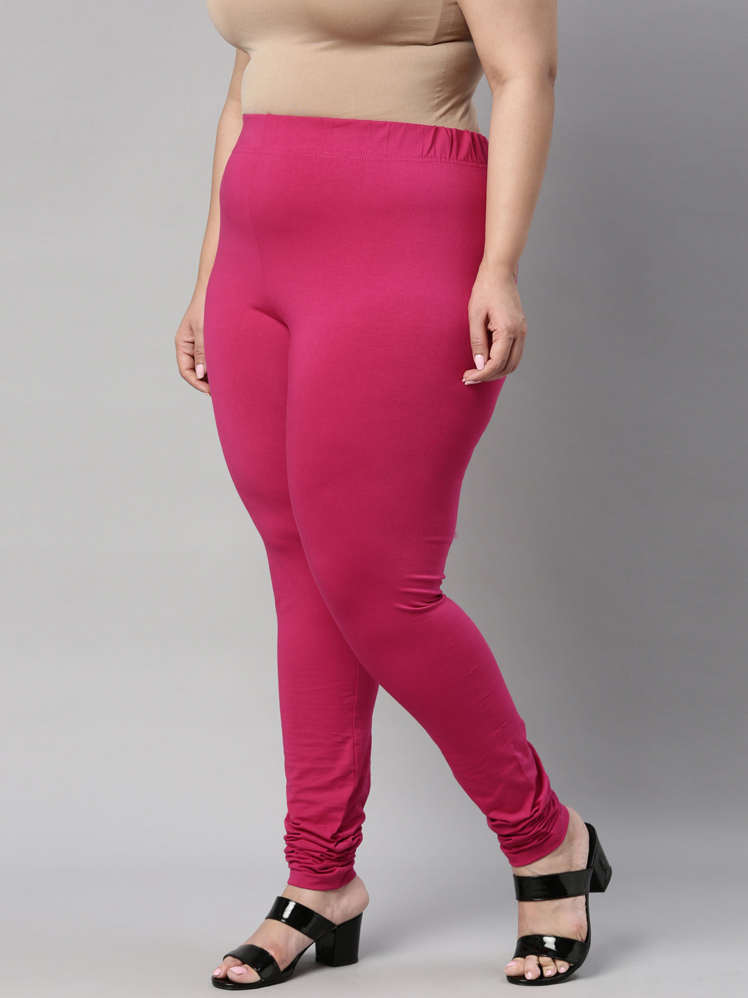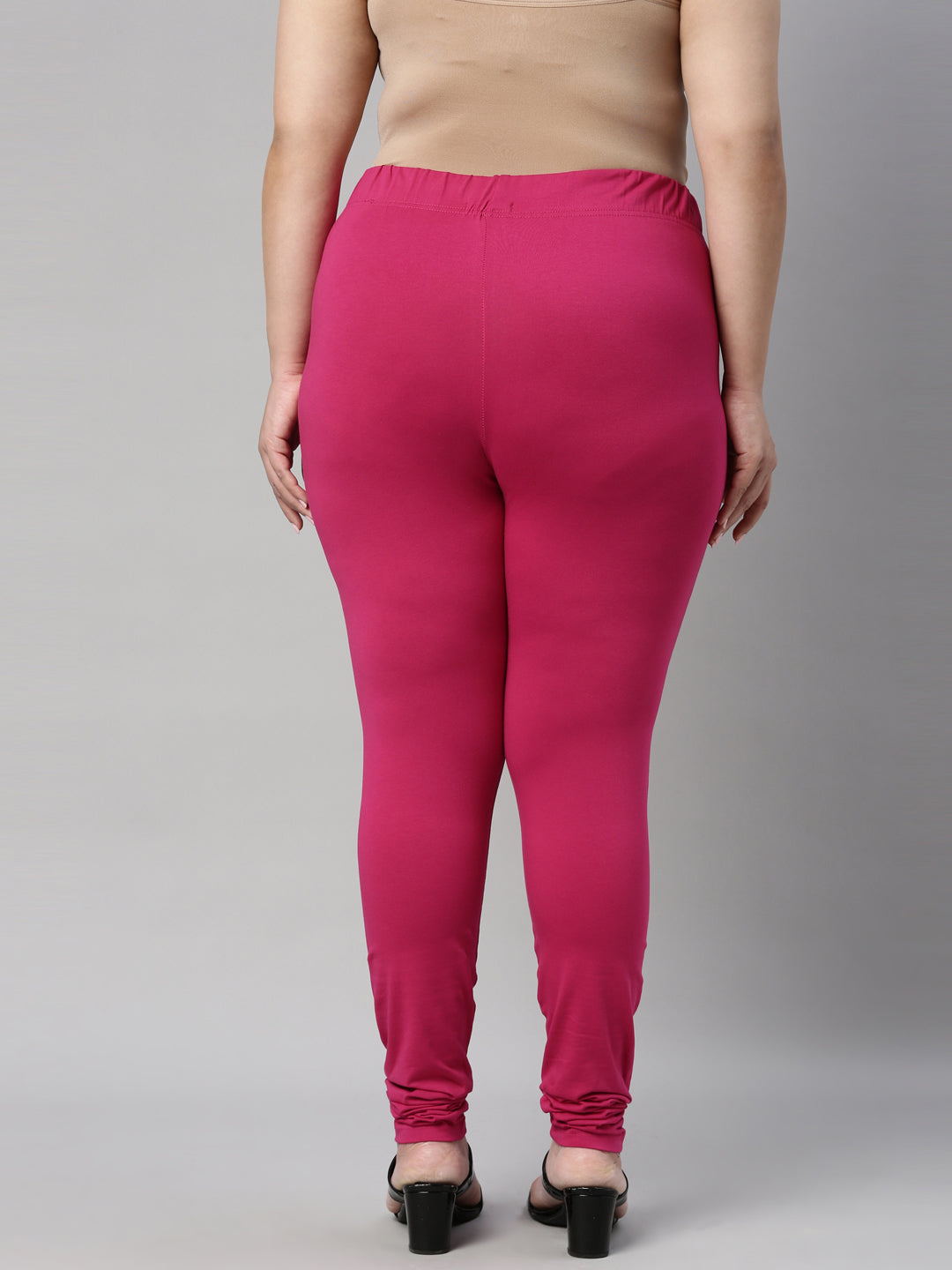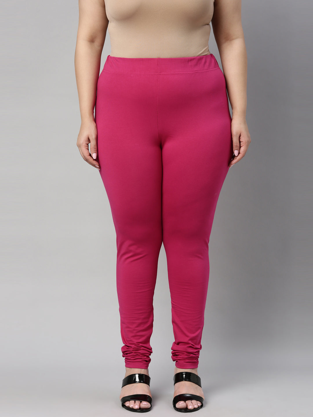 Go chic with a pair of Dark Rose Solid Churidar Leggings. Made from high quality cotton, it has a elasticised waistband & gathers at the hemline.