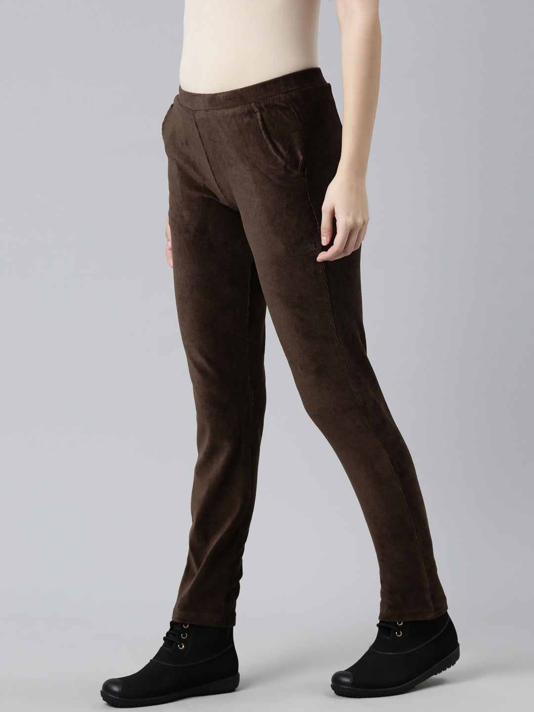 Dark Brown Cotton Polyester Corduroy Jeggings