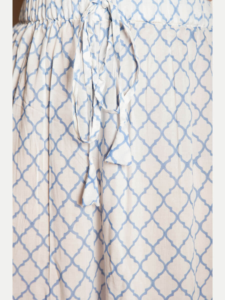 A comfortable palazzo pant handcrafted in modal using traditional hand block printing; perfect for pairing with long shirts, kurtas, and kaftans. Be at your comfortable and stylish best!